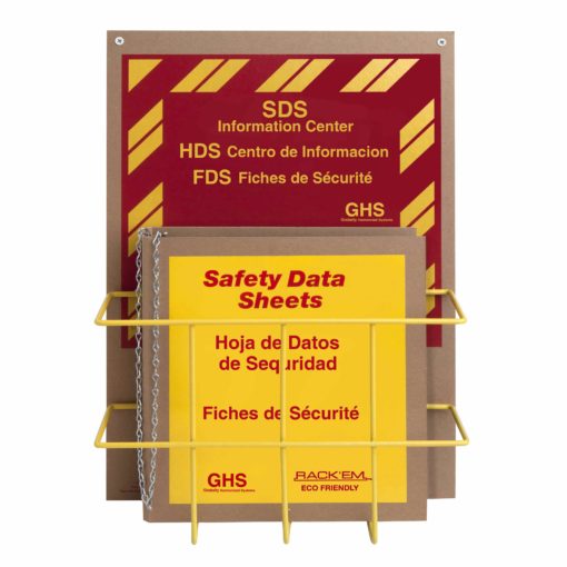 Rack’Em Racks Safety Data Sheets (SDS) Center is Globally Harmonized Systems (GHS) compatible. SDS Center keeps safety data sheets visible,organized, and accesible to all employees. Includes SDS binder with chain, highly visible sign, and wire rack. For dry climates only!