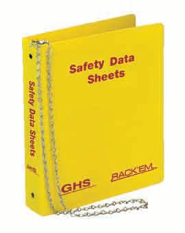 3″ SDS Binder, English. This GHS compliant highly visible binder is easy to find & makes access to important SDS chemical hazard sheets fast and easy