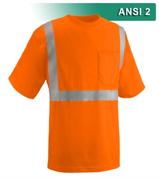 This Hi Vis Orange/Lime Safety Shirt is ANSI Class 2 Compliant. Made with lightweight 4.1oz Birdseye Knit Fluorescent Orange Polyester. It feels butter soft on the inside, yet is work-wear durable. The performance fabric is safety orange and wicks away moisture 3x faster than cotton and minimizes odor. Our VEA® brand (Visibility Enhanced Apparel) High Visibility Shirt features 3M™ Scotchlite™ Reflective Material.