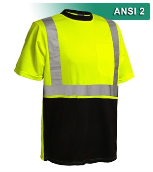 This Hi Vis Safety Shirt is ANSI Class 2 Compliant. Made with lightweight 4.1oz Birdseye Knit Polyester, it feels butter soft on the inside, yet is work-wear durable. The performance fabric wicks away moisture 3x faster than cotton and minimizes odor. Our VEA®brand (Visibility Enhanced Apparel High Visibility Shirt is available in two-tone lime/black to help hide stains and workwear. In addition, this shirt features 3M™ Scotchlite™ Reflective Material.
