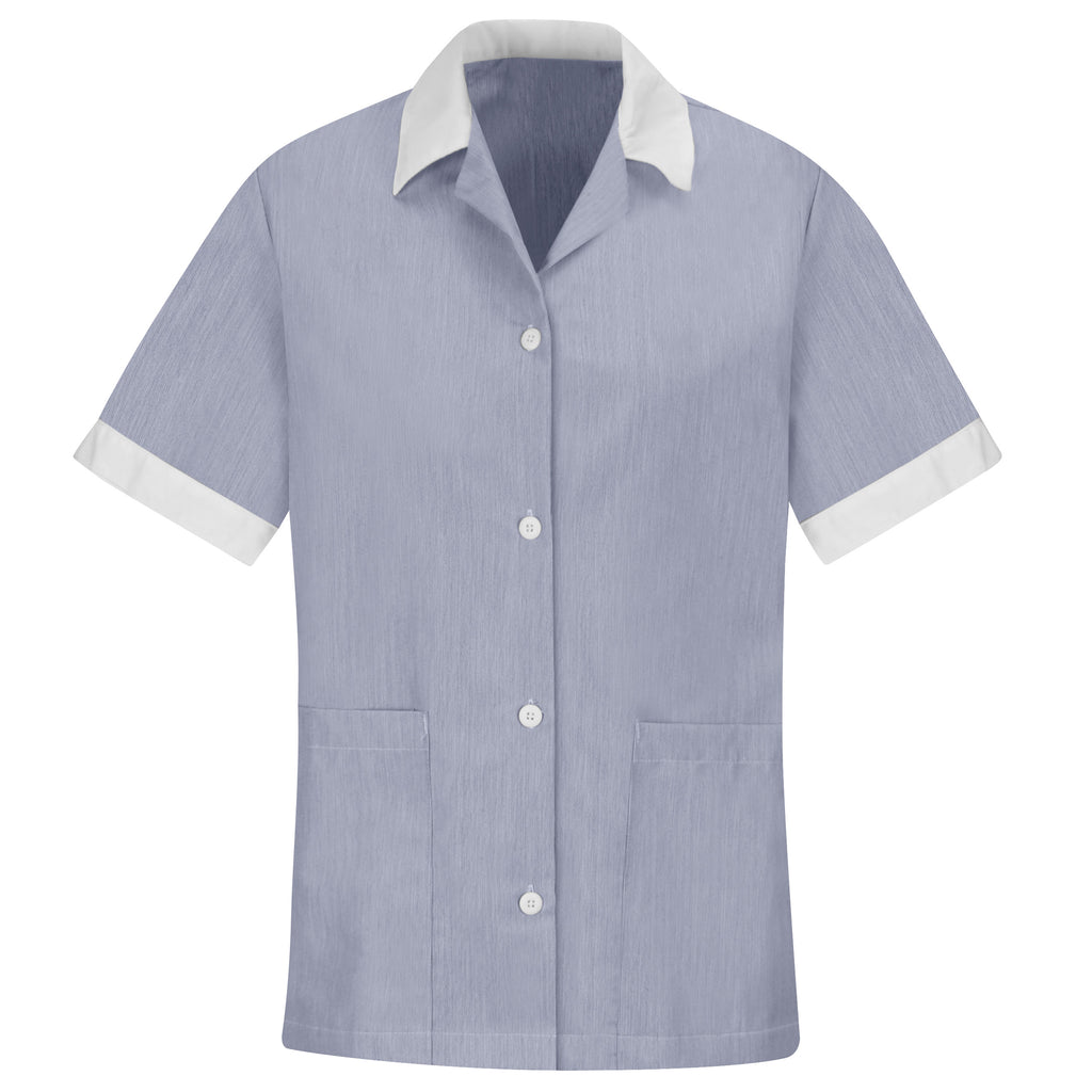 Messes don’t stand a chance. Designed with a back inverted pleat at the hem to keep things looking neat while you bend, stoop and reach, our lapel tunic makes handling your housekeeping job a breeze. And it’s cut from a stain-repelling and soil releasing fabric that keeps you clean no matter how big the mess is. Stay neat and efficient in this no-nonsense work tunic. (Fit Chart: LFC-02)