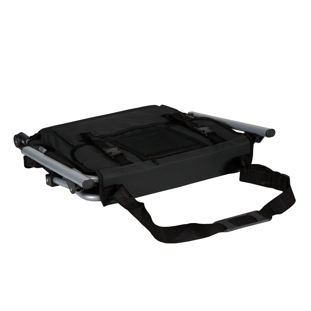 Our Folding Stadium Seat with Arms has a padded seat and backrest that can transform a hard bleacher into a soft place to sit. Features an adjustable shoulder strap for portability, steel tubular-frame for strength and durability, and a lower pocket and large storage pocket on the backrest that is ideal for holding larger materials. Collapsible design with steel hooks on the bottom that can securely attach the seat to all types of bleachers.