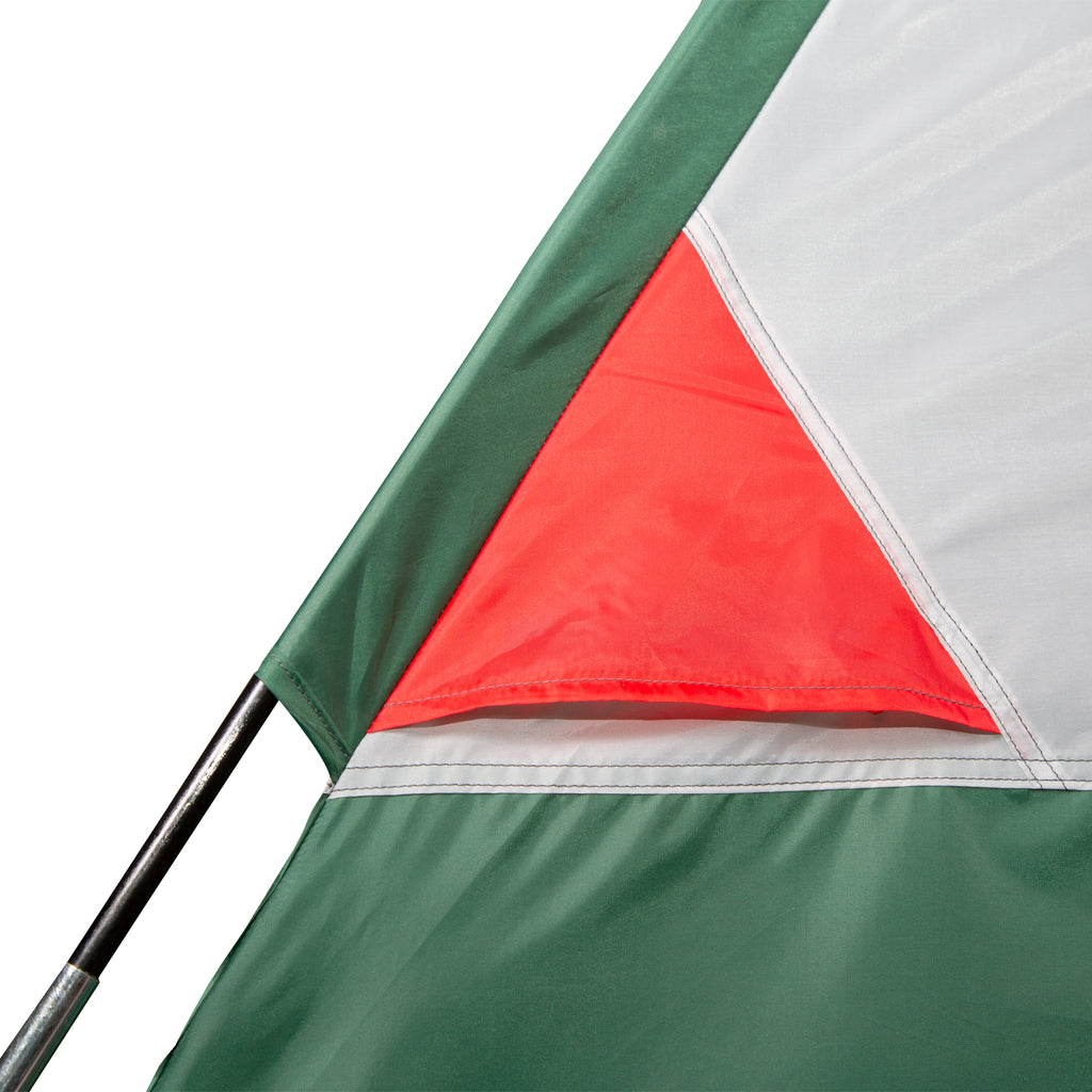 Take the family for a weekend getaway with our “Teton 12” 2-Room Dome Tent. This two-room tent has two large D-shaped entry doors to keep the family under one roof, but with the privacy of separate rooms. Two large side windows, 1 rear window, and a mesh roof add plenty of ventilation while a peaked rain fly keeps the tent dry. Electrical port attached to tent. Tent fabric is 1,000 PU coated and rainfly is 800 mm PU coated. Zippered carry bag included.