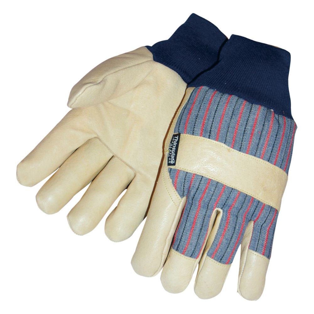 Tillman Large Thinsulate Lined White Premium Top Grain Pigskin Palm Cold Weather Gloves feature gun cut with knitwrist which is designed with no seams on the back to offer magnificent comfort. Canvas back gloves have Thinsulate inside lining that enhances warmth while working in cold condition. Gloves with wing thumb perfectly fit the contour of the wearer hand comfortably. Rugged gloves are made of durable smooth finish top grain pigskin with knuckle strap which provide added protection for the back of the hand.