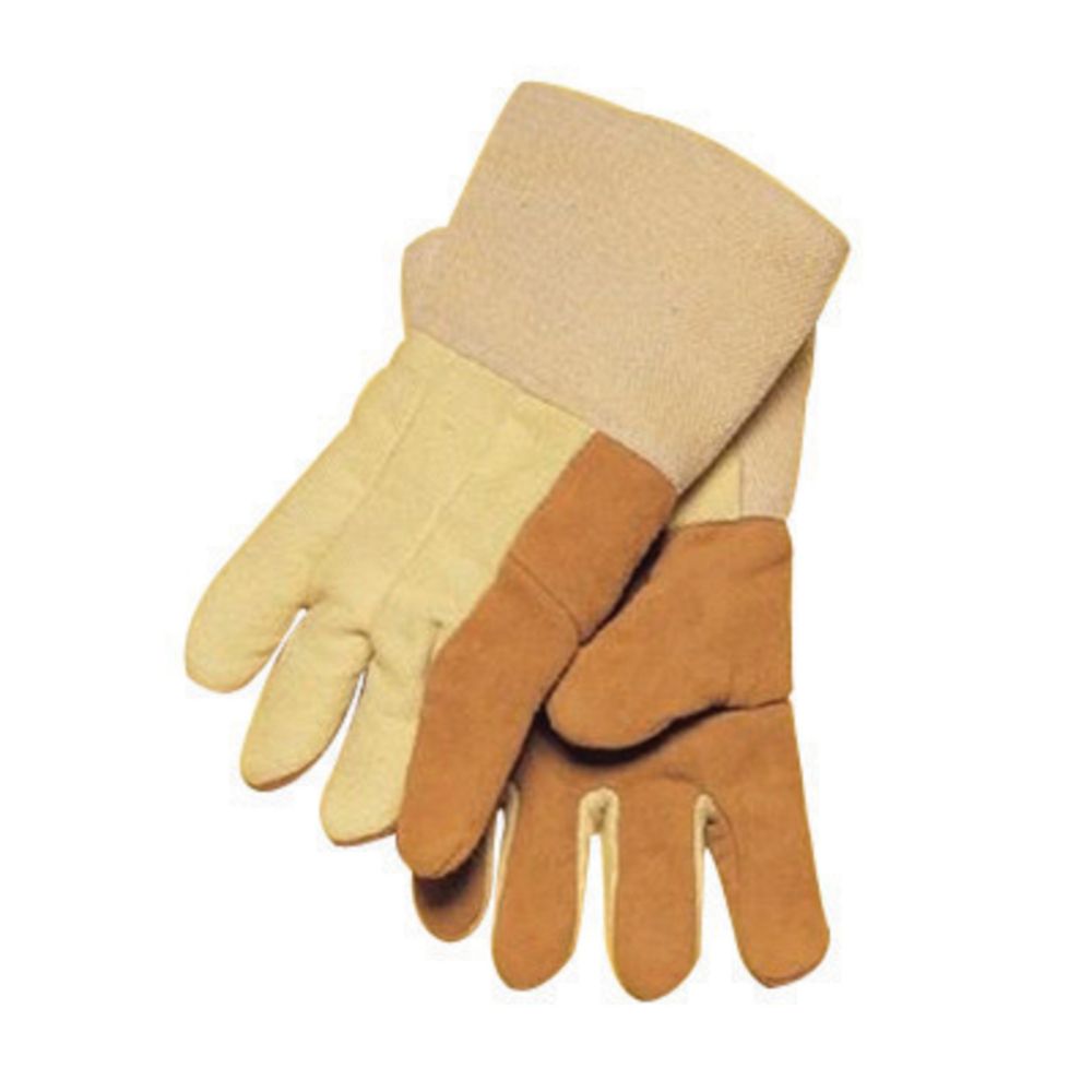 Tillman X-Large Brown Double Wool Lined 22 oz Heat Resistant Gloves with 24 oz gold acrylic coated fiberglass gauntlet cuff feature split cowhide reinforced leather to provide enhanced heat resistance. 14" Gloves with Flextra palm and back help render protection from high temperature that range from 600 deg F - 1000 deg F. Gloves are stitched with Kevlar thread for durability and for added heat protection as well as toughness.