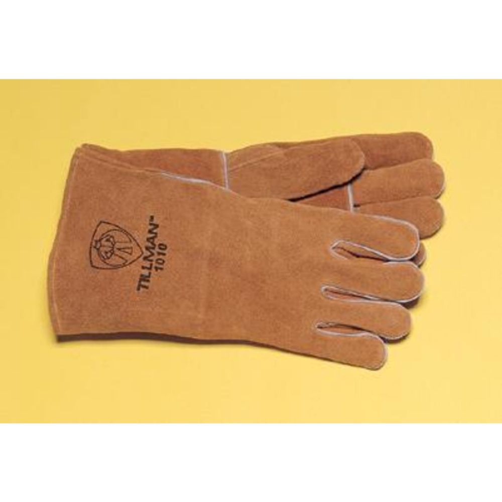 Tillman X-Large 14" Russet Welder Left Hand Glove with reinforced thumb has a cowhide shoulder split construction and the insides are lined with cotton for comfort. It is lock stitched with cotton thread for extra strength and the cotton stitching is secured by the welted fingers. DuPont and Kevlar are trademarks or registered trademarks of E.I. du Pont de Nemours and Company.