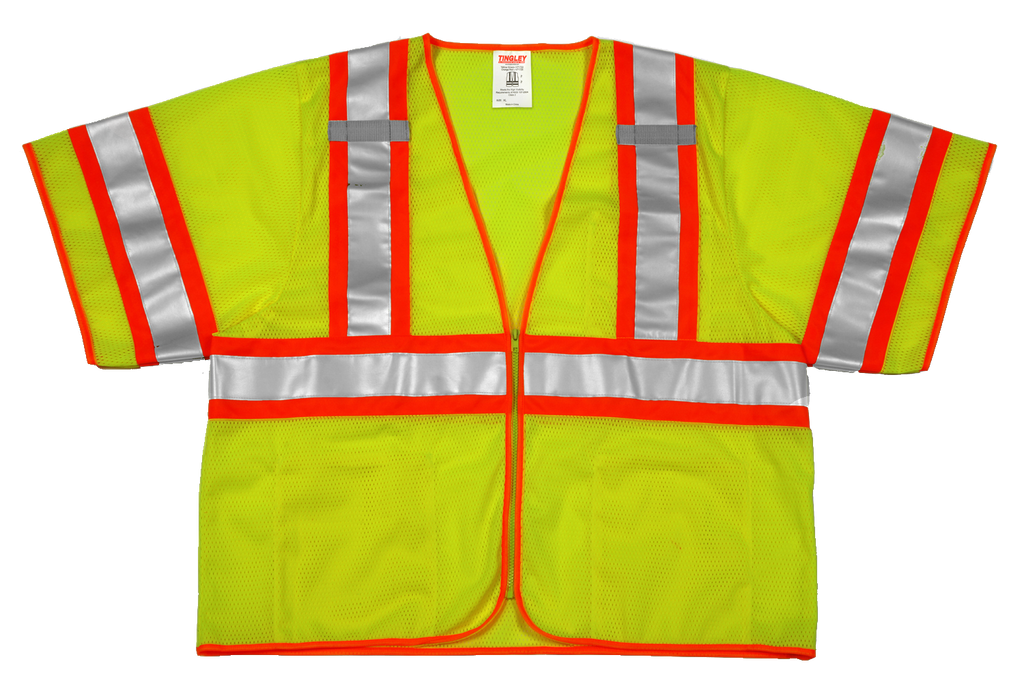 Type R Class 3 High Visibility Two-Tone Safety Vests - Comfortable, durable, constructed of breathable mesh material. �?� ANSI/ISEA 107 Type R Class 3 Compliant Vest. �?� Polyester Mesh. �?� Two-Tone 2�?� Silver Reflective Tape with Contrasting Backing. �?� Zipper Closure. �?� 2 Mic Tabs. �?� 4 Interior Pockets