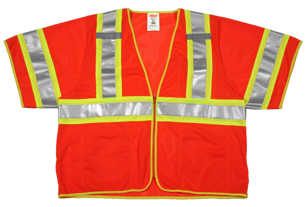 Type R Class 3 High Visibility Two-Tone Safety Vests - Comfortable, durable, constructed of breathable mesh material. �?� ANSI/ISEA 107 Type R Class 3 Compliant Vest. �?� Polyester Mesh. �?� Two-Tone 2�?� Silver Reflective Tape with Contrasting Backing. �?� Zipper Closure. �?� 2 Mic Tabs. �?� 4 Interior Pockets