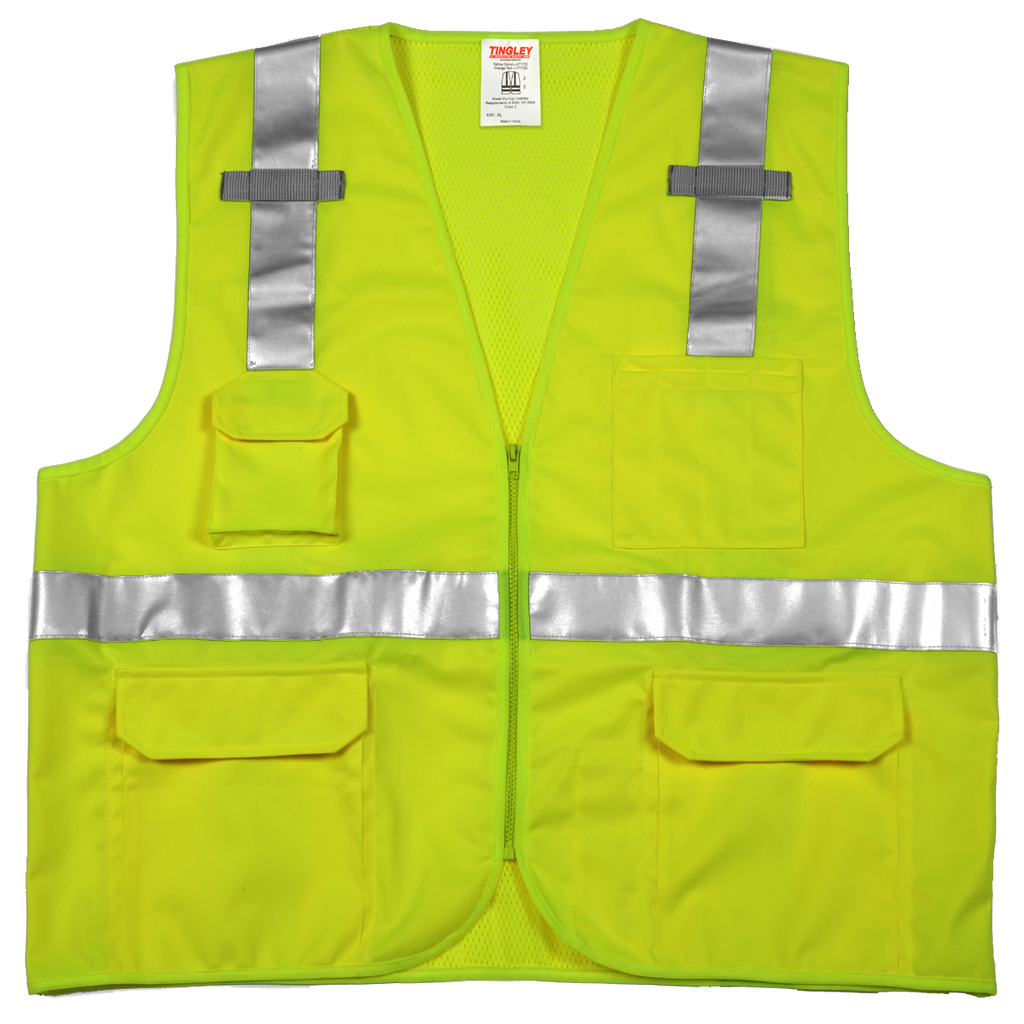 Type R Class 2 High Visibility Surveyor Style Safety Vest - Lightweight, affordable, features breathable polyester material and 2” silver reflective tape. • ANSI/ISEA 207 Type R Class 2 Compliant Vest. • Polyester Solid Front, Mesh Back. • 2” Silver Reflective Tape. • Zipper Closure. • 2 Mic Tabs. • 5 Exterior Pockets. • 3 Interior Pockets