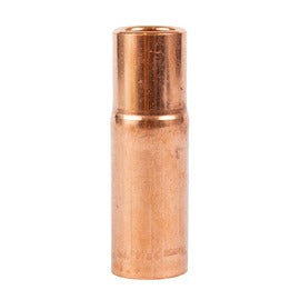Tweco® 23 Series Self Insulated Nozzle with is designed for standard gas diffuser and the nozzle strings into the conductor tube assembly. Is used in heavy-duty welding applications for up to 450 A. It features part number rolled stamped on the outer surface for easy identification. Nozzle with 9/16"-18 UNC-2B thread size that is used where longer electrical stick-out is needed or when the nozzle touches the work place is made of 122 DHP copper alloy. It has a 3-piece design that includes a nozzle housing that is cut and formed from copper alloy tubing, a nozzle insert machined from a solid brass and nozzle insulator constructed of silicone material. It has nozzle insert that allows machining of internal threads in order to match the conductor tube OD threads. Nozzle offers electrical insulation required from the gas diffuser using the nozzle insulator and is sold as 2 per pack.