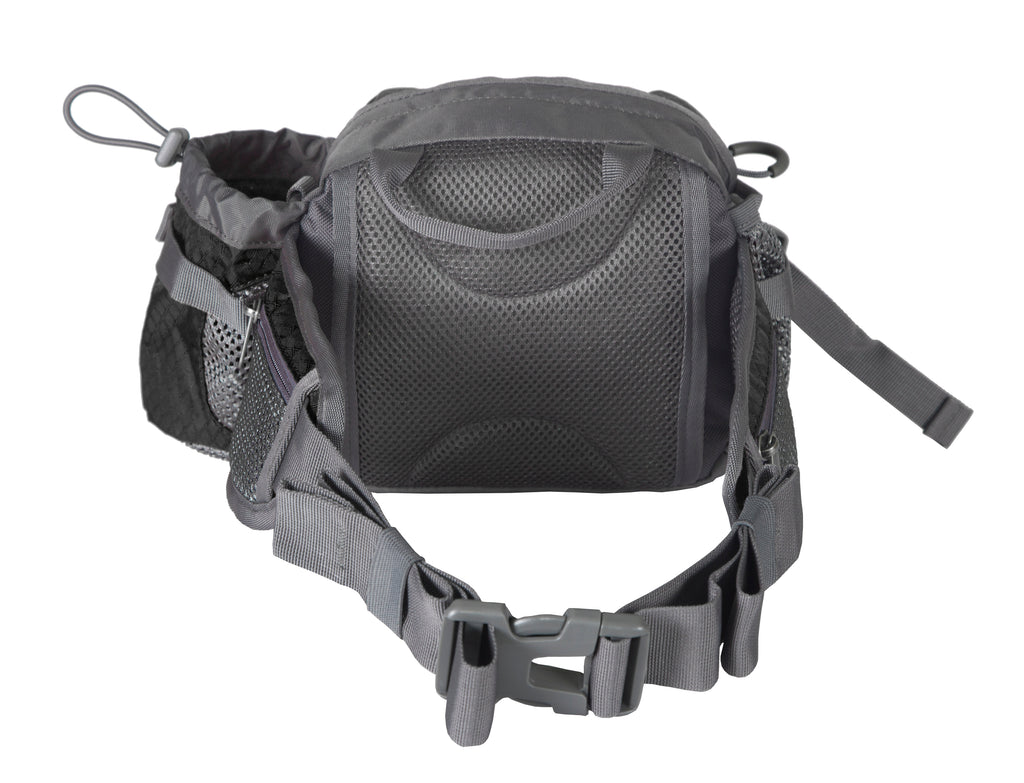 Our waist pack brings the freedom of hip-mounted storage, and the versatility an optional shoulder strap. The main bag holds 5 liters of gear - perfect for an afternoon hike, run or ride. We've added 2 main pockets, 2 mesh waistbelt pockets, a water bottle pocket, and mesh gel pocket to keep all your gear organized and accessible. With our adjustable shoulder strap, you can unclip the hip strap, and turn the waist pack into a casual, urban storage solution!