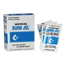 Water-Jel® Technologies Burn Jel® is ideal for using in workspace for cooling burns and relief pain using the pain relieving ingredient lidocaine. Burn jel is packed in a 3.5 g unit dose dispenser box.