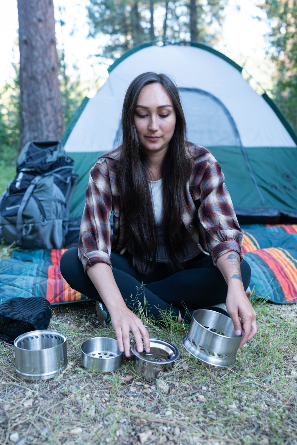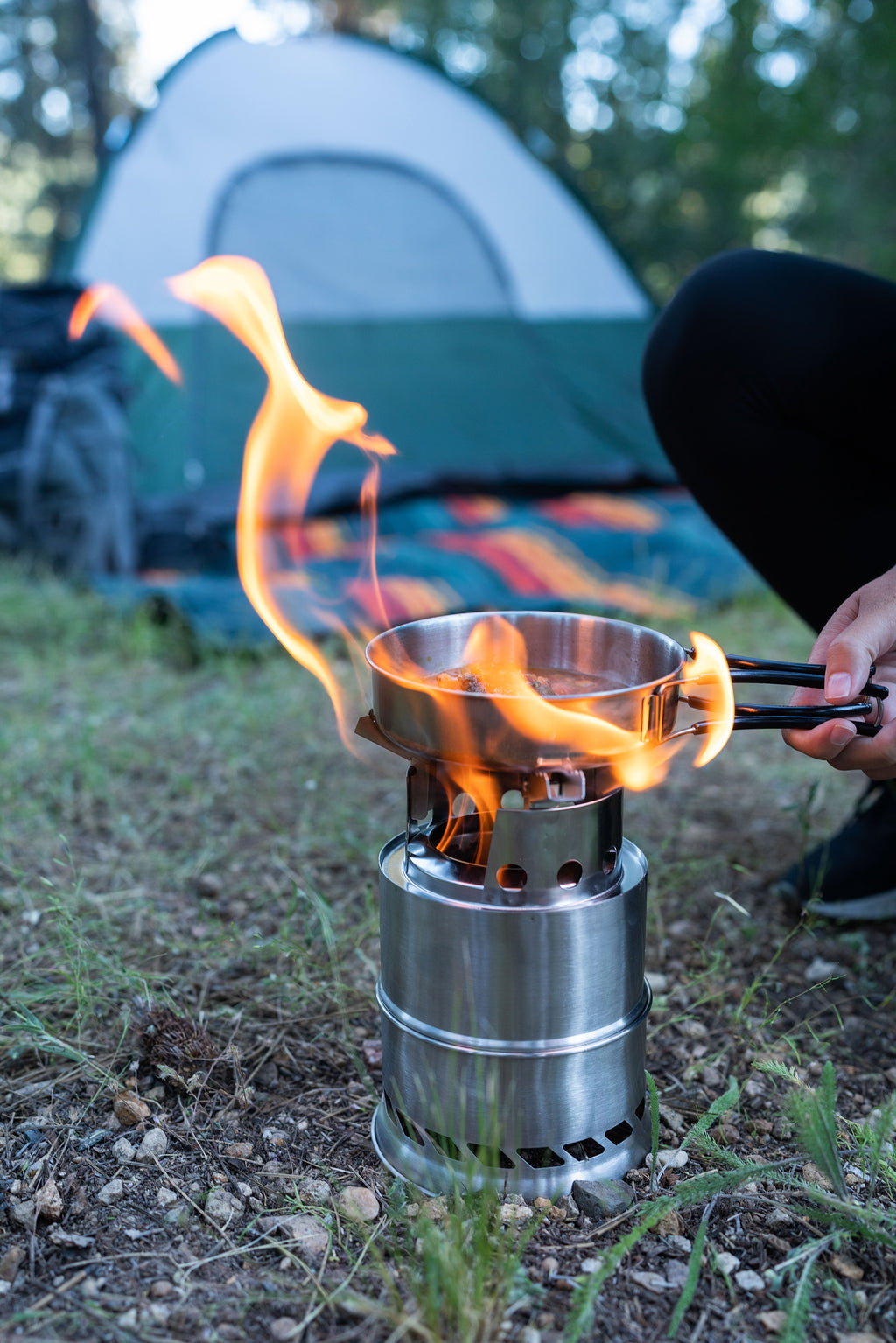 There's nothing more comforting than a warm meal after a day out in nature. This Stansport Stainless Steel Wood Burning Stove is the perfect cooking accessory for those who want to ditch the fuel for a more natural back-to-basics cooking approach. This stove is constructed of a stainless steel frame stacks and collapses with ease. The three structural pieces stack in fit snugly inside of each other for compact storage, and stack together to build out the perfect sized vessel for cooking your next meal on. As stated in the name, this stoves is powered by wood chips and twigs, with no additional fuel required. The fold-out pot support arms create a stable cooking platform for a variety of pots and pans, and the whole things fits compactly inside of the included mesh carry bag. This stove is an ideal accessory for cooking your dehydrated meal packs, making coffee, or boiling water. Make cooking your camping meals a satisfying and natural experience with Stainless Steel Wood Burning Stove!