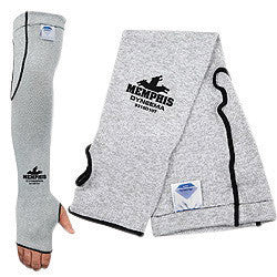 Memphis Glove DYNEEMA® 18" Gray Sleeve with thumbhole offers high comfort level and is launderable. 10 ga Cut resistant sleeve achieves a CE cut score of 3 and a CPPT score of 2. Sleeve is made with FDA-accepted materials and is suitable for food processing applications. Sleeve that is cool and comfortable allows manual dexterity. Sleeve has the ability to dissipate body heat and pass moisture from inside of the glove to the outside. Sleeve is ideal for applications like assembly line, air conditioning manufacturing, cut protection, glass handling, food service, HVAC, warehousing and many more.